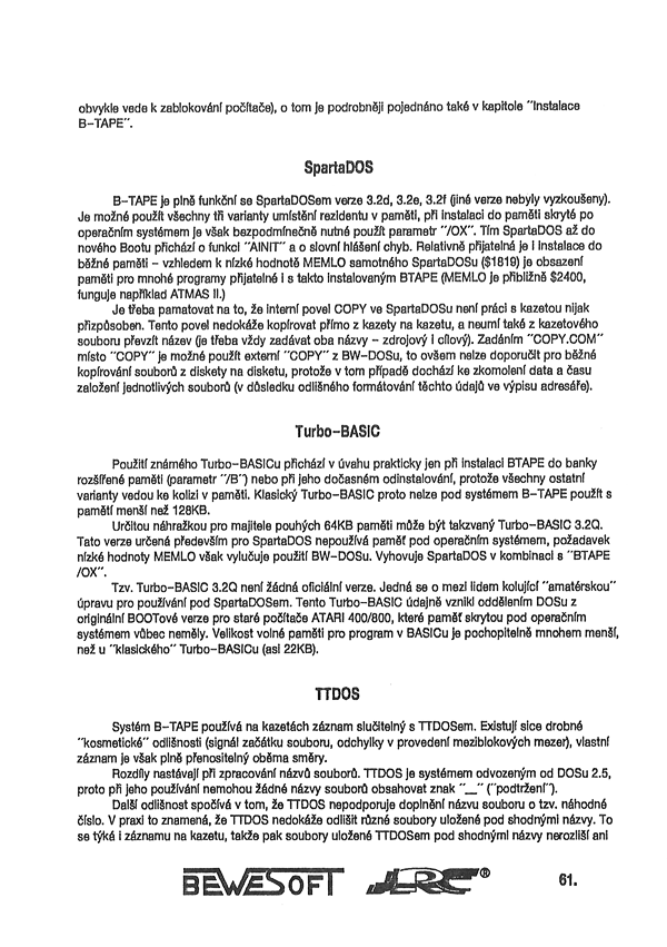 BW DOS 1.30, B-TAPE 1.0
