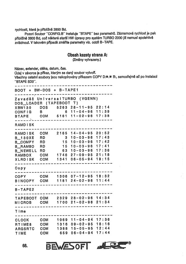 BW DOS 1.30, B-TAPE 1.0